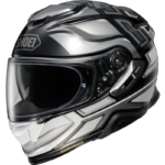Casco integral de motocicleta Shoei GT-Air 2 en versión gráfica Notch. Calota exterior fabricada en AIM, combinación de fibras orgánicas y fibras multicompuestas. Estructura interior con EPS de múltiples densidades. Pantalla CNS-1 con sistema de cambio rápido y lente antivaho Pinlock EVO incluida. Visor solar interior QSV-2 accionado mediante deslizador lateral. Sistema de ventilación con entradas de aire en la zona superior y mentonera, y salidas en la parte posterior. Interior desmontable y lavable, con almohadillas laterales, acolchado central y cubrebarbilla extraíbles. Cierre micrométrico de acero inoxidable. Sistema E.Q.R.S. para extracción rápida de las almohadillas laterales. Espacio específico para la instalación del sistema de comunicación SENA SRL2. Incluye deflector de aliento y cubrebarbilla. Homologación ECE 22.05. Modelo perteneciente a la gama GT-Air II de Shoei.